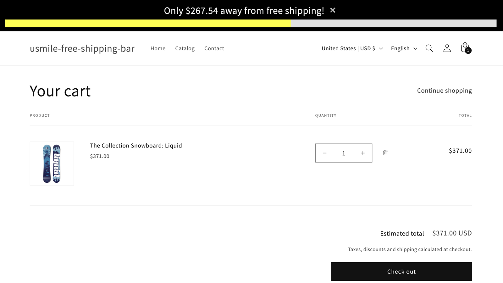 お客様がカートに商品を追加すると、送料無料までの残り金額をリアルタイムで表示するバーがストア上部または下部に表示されます。「あと○○円で送料無料」というメッセージが購入意欲を高め、追加購入を自然に促します。 設定した閾値金額に達すると、送料無料ディスカウントを自動で作成・適用するため、Shopifyの配送設定と二重管理する手間がありません。チェックボックス一つでこの機能のオン・オフを切り替えられます。 Shopify Marketsの多通貨に対応しており、海外のお客様にも現地通貨で残り金額を表示します。バーの色、フォントサイズ、プログレスバーの有無など、ノーコードでデザインをカスタマイズできます。 日本語サポート付きで、設定から運用まで安心してご利用いただけます。