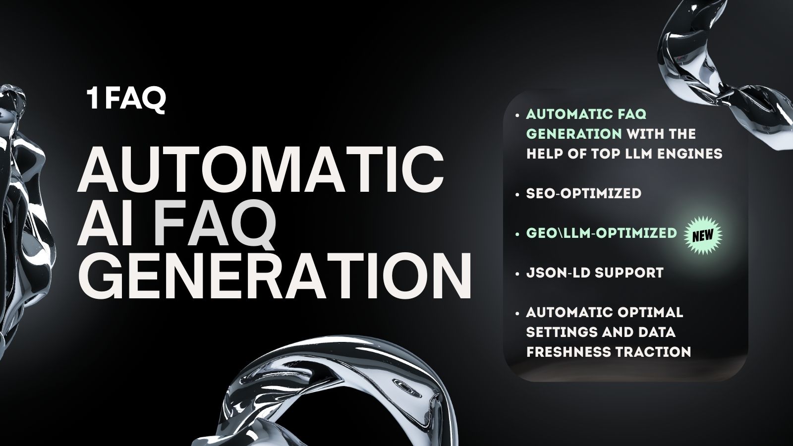 Automatic AI FAQs from product descriptions to enhance SEO, LLM mentions, and customer knowledge.