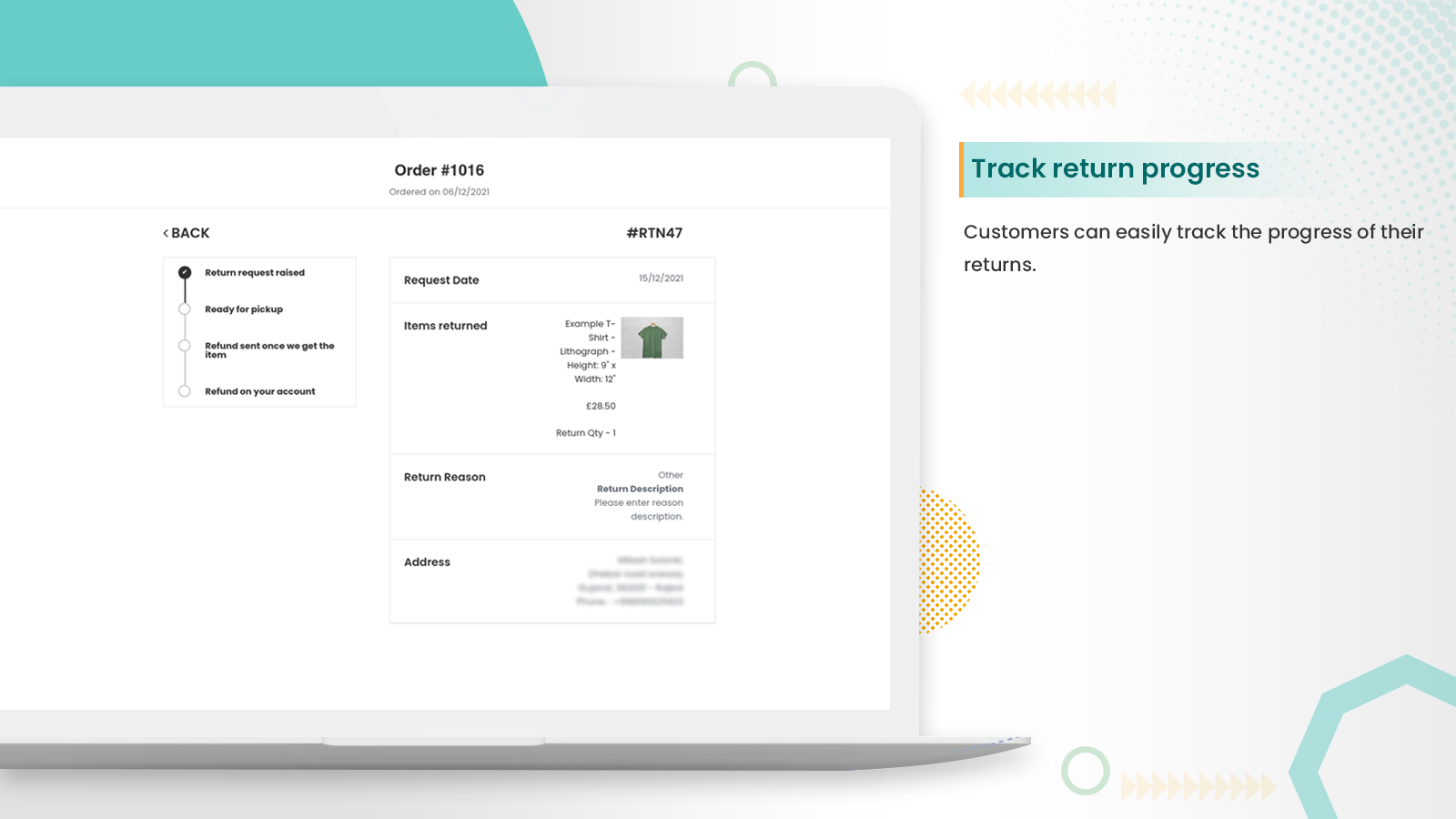 # Email Notification & Validate OTP based Return Request through email Accu Easy Return app provides customizable event-based email notifications and validates order return requests through OTP-based email. # Ultimate Features Features like returns management, Email Notification, Track Timeline Based Return # Data Protection Ensure Data Protection & GDPR Compliance for your customers. # Support If you have any questions, feel free to contact us. We are always here to help you.