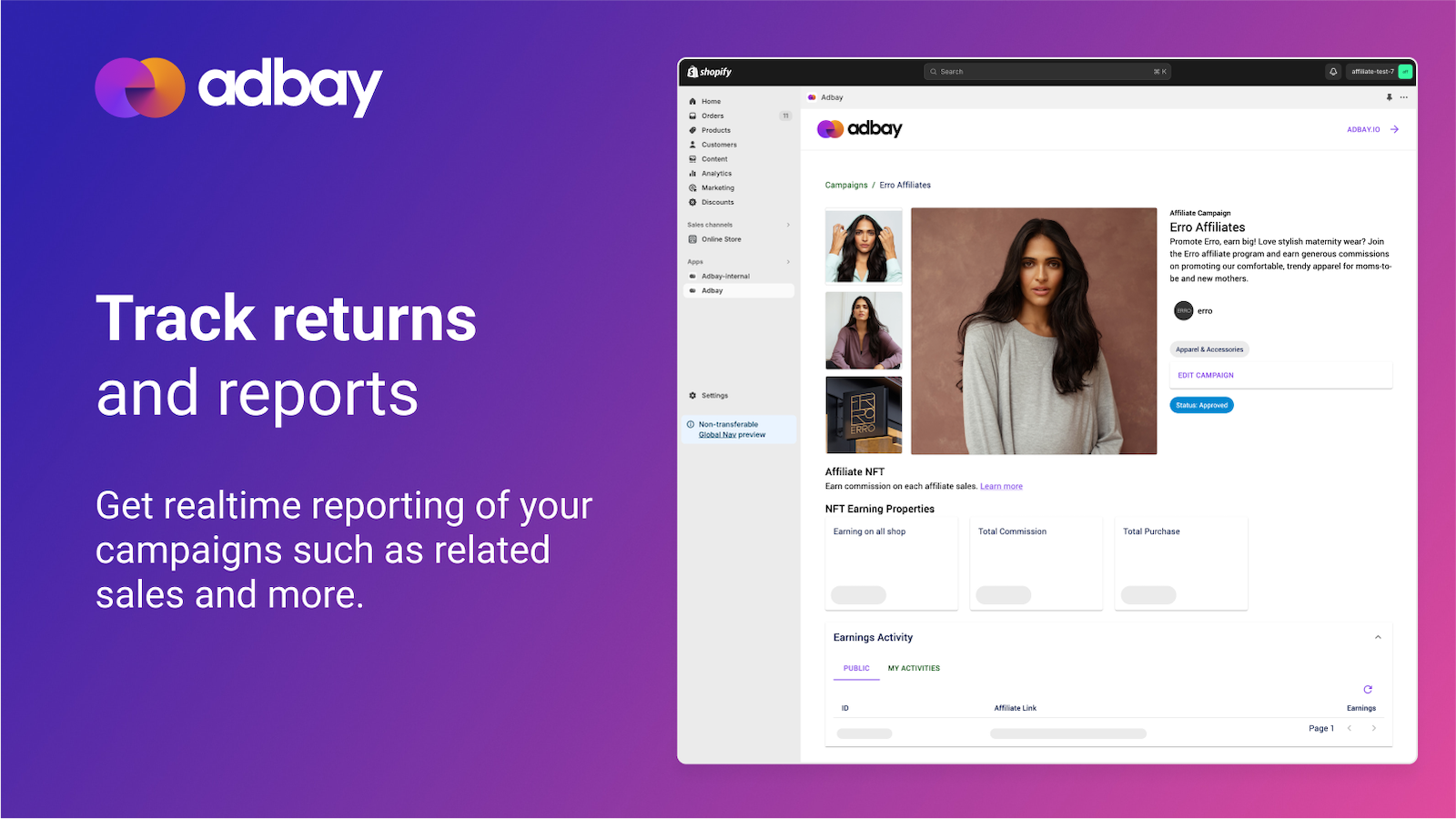 Drive sales with Next-Gen Ads powered by the world's creators. Create campaigns straight from Shopify: Affiliate Ads: Boost sales with Ads that reward influencers and publishers for promoting your products. Track returns and stats. Sync your products to Adbay. More info: https://adbay.io