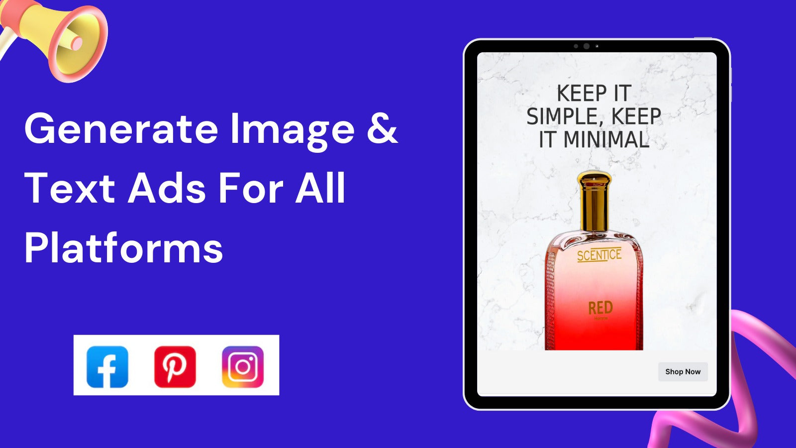Create HD ad copy & visuals for Facebook,Instagram,Pinterest, Google, and Bing in seconds.
