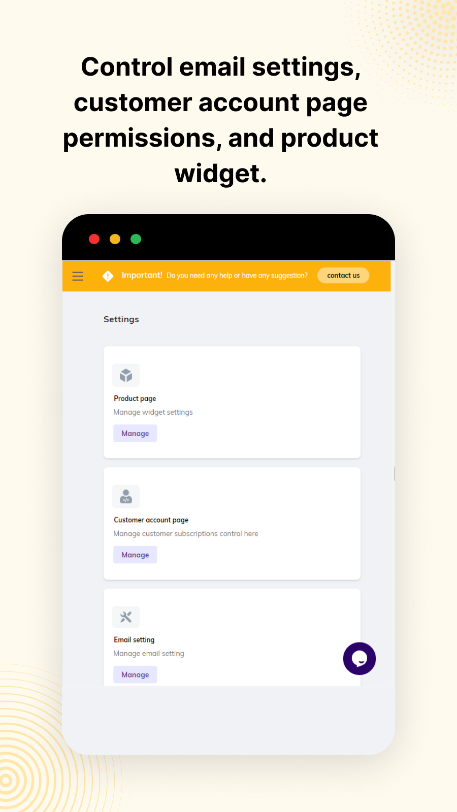 We provide a streamlined subscriptions creation process. No hard coding is necessary. The flexibility offered is simple to use and manage. Simple and interactive user interface for managing customer subscriptions. Customers can modify their subscriptions, the payment methods, their shipping addresses, and the profile data connected to those subscriptions. All of this without interacting with anyone from your workplace.