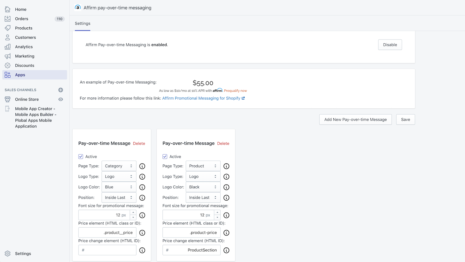The Affirm Messaging app enables you to display a customer's estimated monthly or bi-weekly payment amount on product pages and at checkout. Reframing prices as a budget-friendly monthly payment can increase average order values. To get started, you can create a merchant account by going to the Affirm website and clicking the "For Business" link.