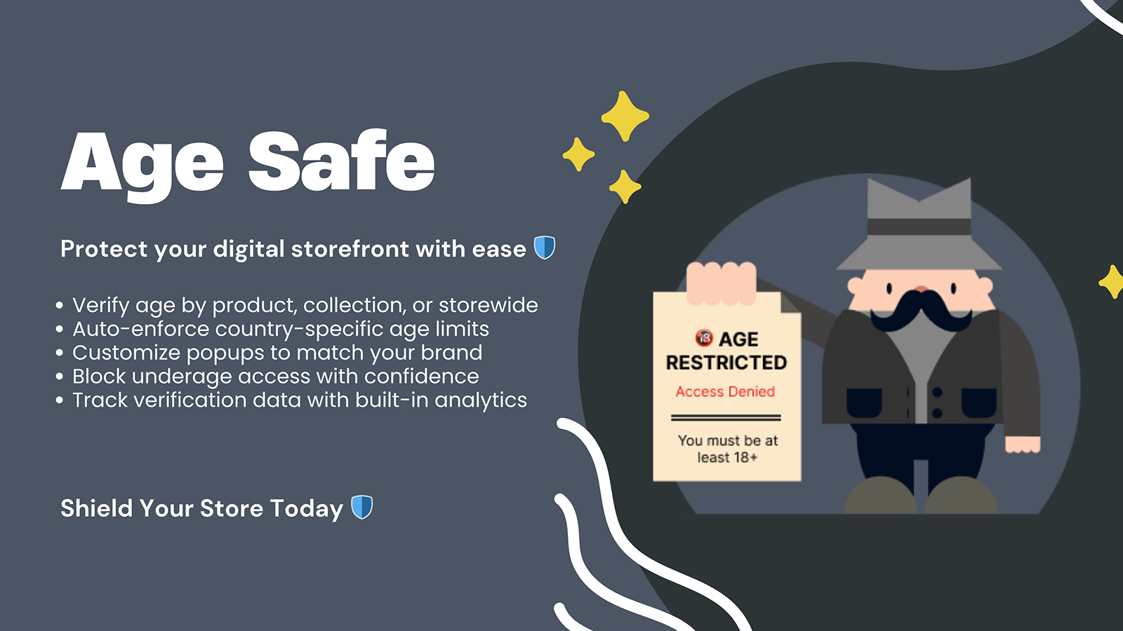 AgeSafe: Your store’s digital gatekeeper—protect sales, verify ages, and ensure secure compliance.