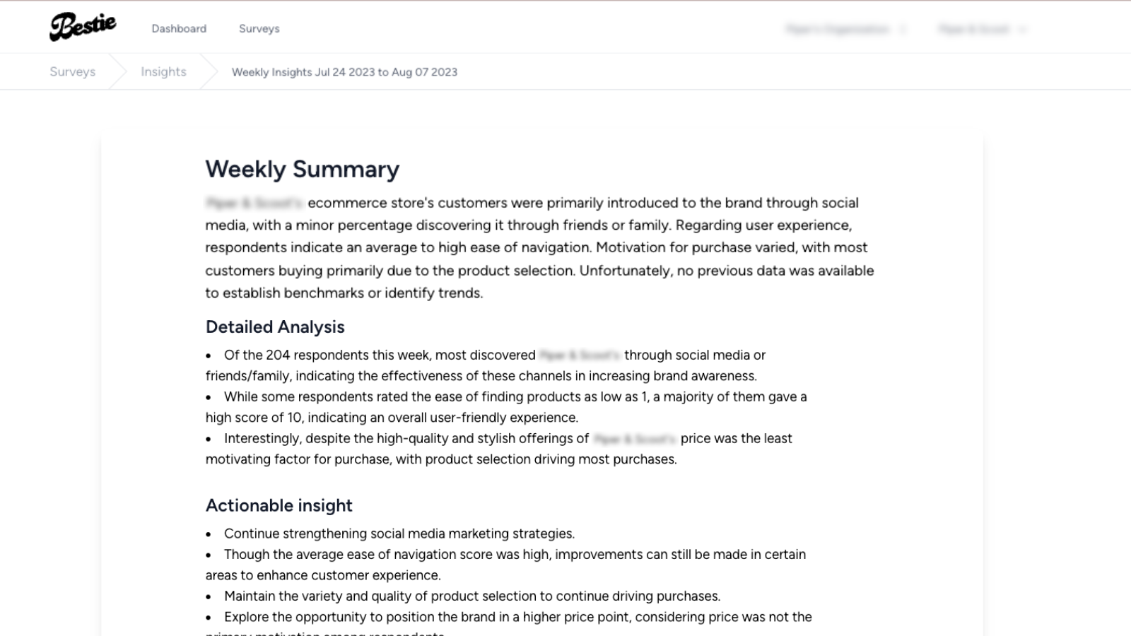 Creating surveys can SUCK, but that's no excuse to not talk to your customers. Bestie is here to help! Take the pain out of survey creation by auto-generating surveys based on your needs using AI. Then, Bestie will save you time by analyzing your customer data and delivering actionable insights to help you scale your brand.