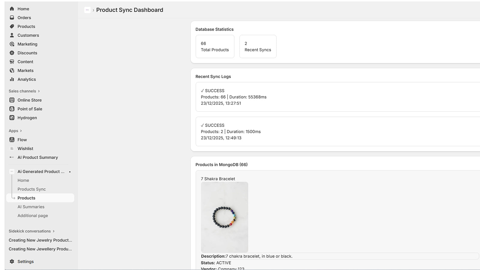 This app helps merchants create AI-generated product titles and descriptions using existing product data. Merchants can view and manage generated content inside the Shopify admin and display it on product pages using a theme app block. The app saves time, improves content consistency, and allows easy customization without editing theme code.
