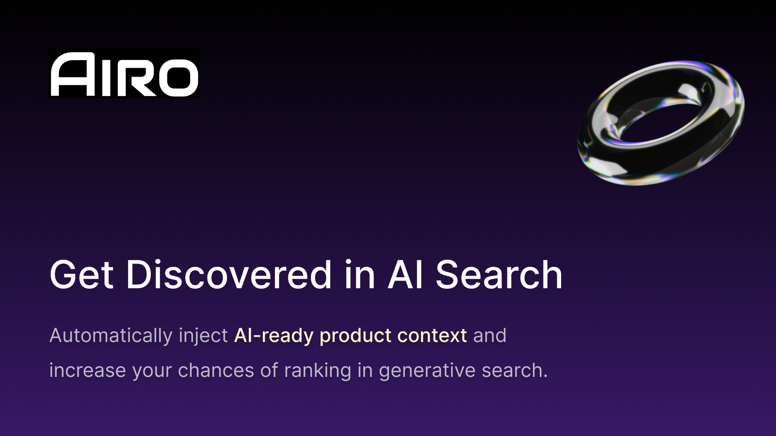 AIRO makes your products easier for generative engines to understand, helping them appear more often in AI search and recommendations. By automatically injecting proprietary AI product context, AIRO increases the chances your catalog is surfaced when shoppers use tools like Chat GPT. The built-in perception dashboard shows how your brand is recognized by AI, lets you track changes over time, and highlights opportunities to improve visibility. Setup is quick, no coding required.