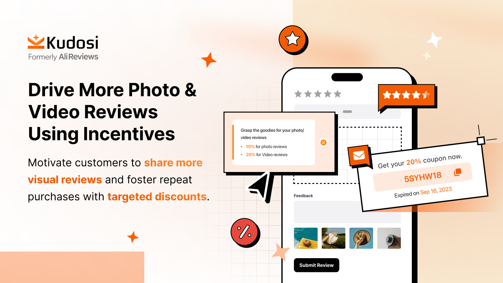 Kudosi (formerly Ali Reviews) breaks no-sales, no-product reviews loop. Easily import AliExpress reviews, Amazon reviews to build instant trust. Save time with Amazon reviews, AliExpress review importer powered by AI, suggesting quality sources to import reviews to Shopify. Show all reviews with beautiful, fast-loading review widgets for pro look & higher conversions. Increase real products reviews by automating email review requests with templates, built-in review form. AliReviews is now Kudosi