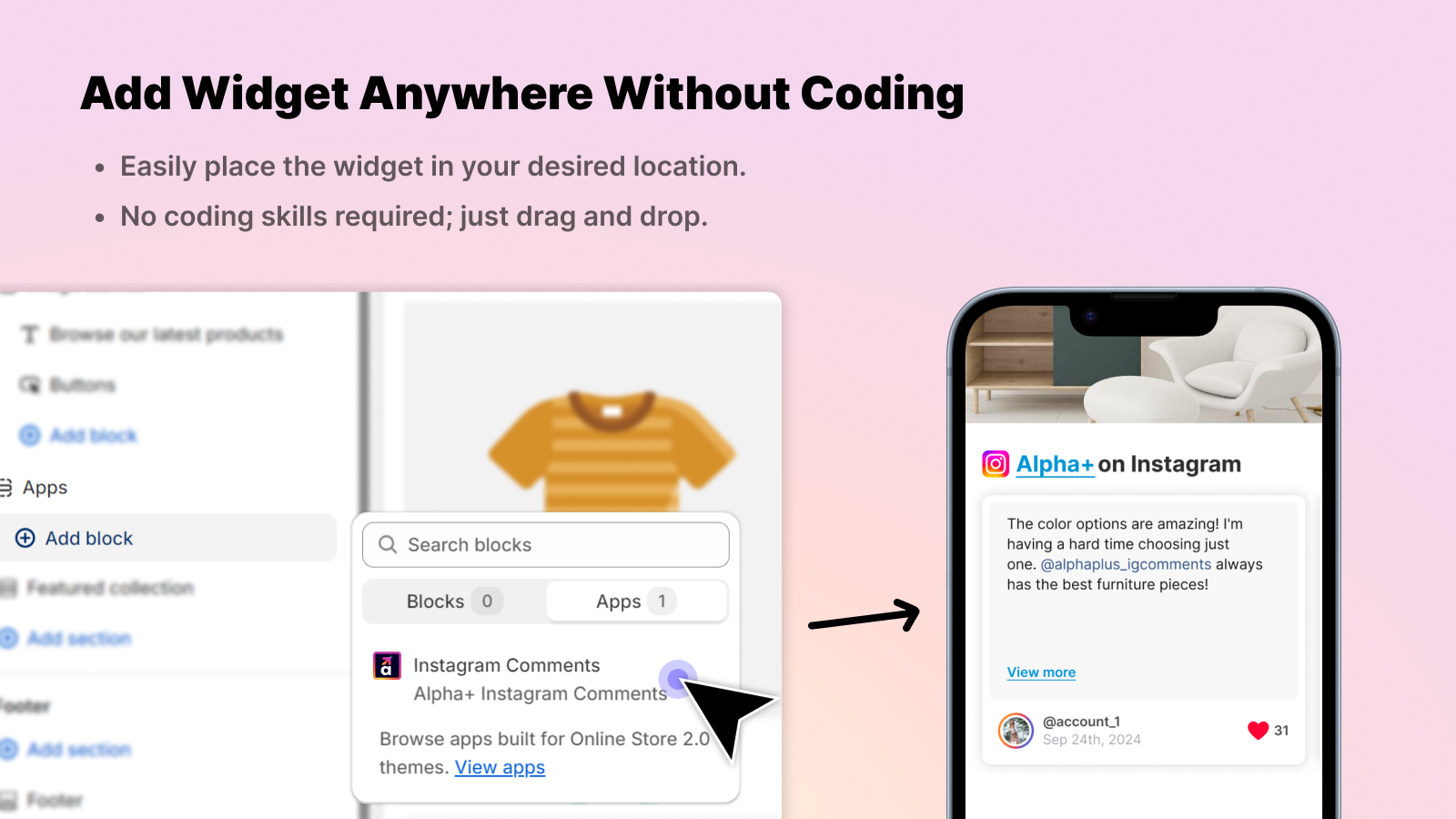 Bring in Instagram comments and display them on your store with minimal yet elegant widgets.