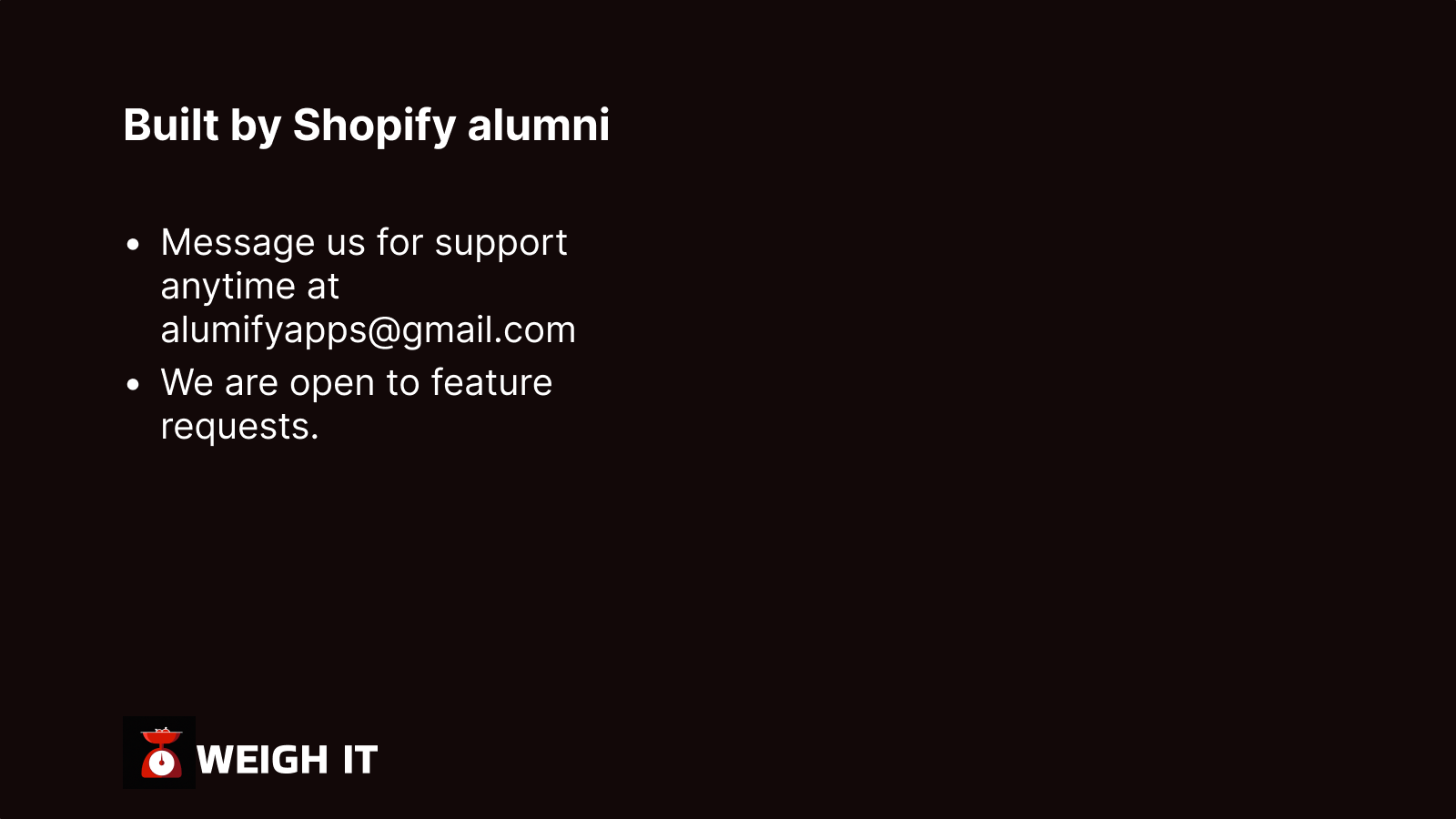 We set out to build a simple and reliable way to sell products by weight that fit into your existing work flows. It’s the perfect companion for grocery stores, spice stores, hardware stores, butcher stores, bulk stores, fabric stores or garden stores — anywhere you need to sell or purchase by weight. We don’t integrate a scale, instead you type in the weight or unit number. We support kg, 100g, g, oz, lb. Contact us if you need another unit and we’ll add it.
