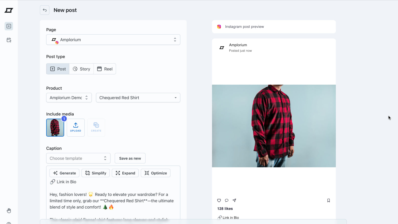 Amplorium simplifies social media for your Shopify store. Automate Instagram and Facebook posts with ease, saving time while keeping your feeds active. Our pre-designed video templates turn your product photos into engaging Instagram Reels in seconds, and AI-powered captions ensure every post connects with your audience. Add a new product to your store, and Amplorium auto-posts it for you. Schedule unlimited posts and enjoy effortless marketing. Etsy and TikTok integrations are coming soon!
