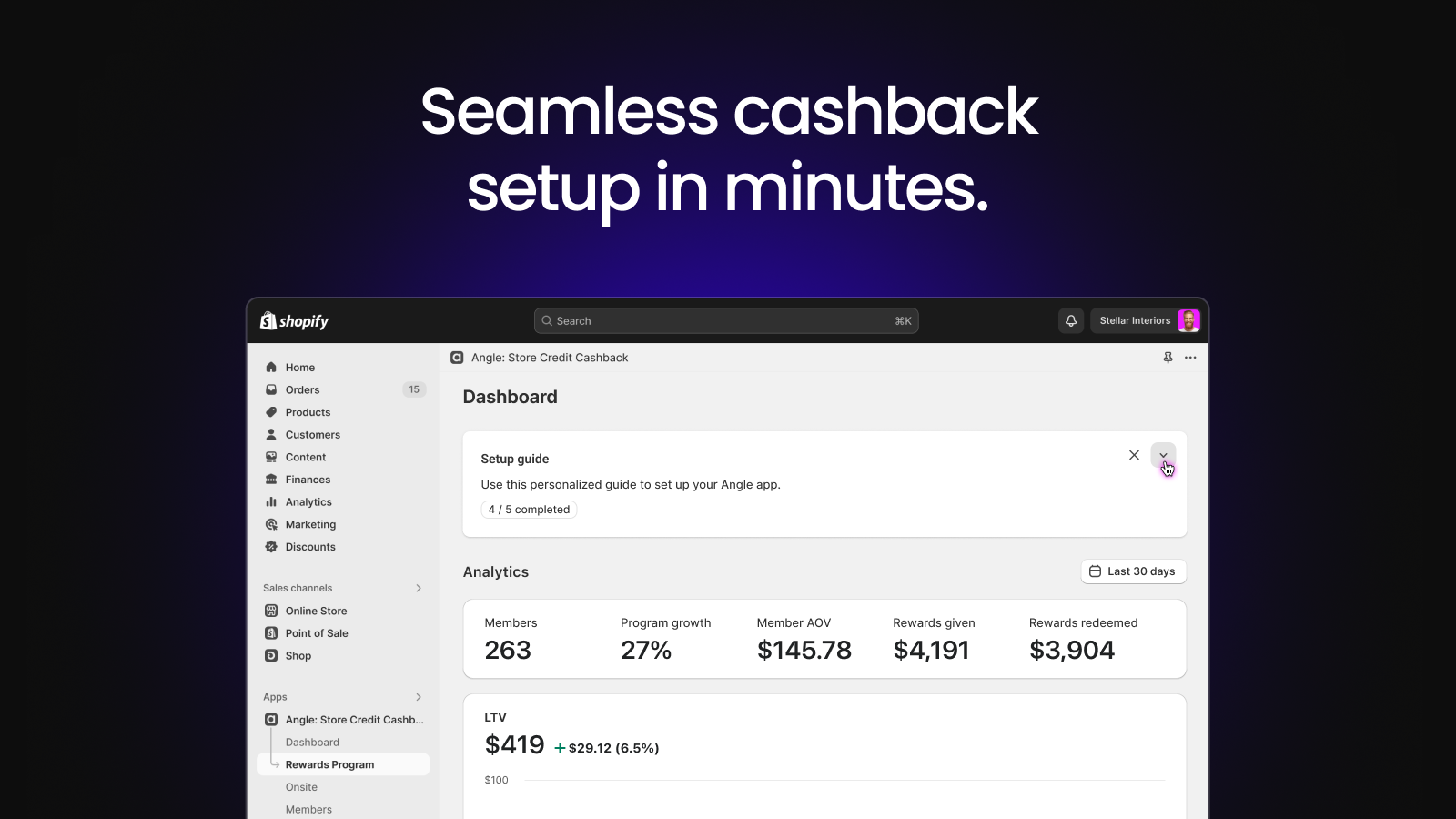 Instant store credit cashback to boost repurchase and customer LTV.