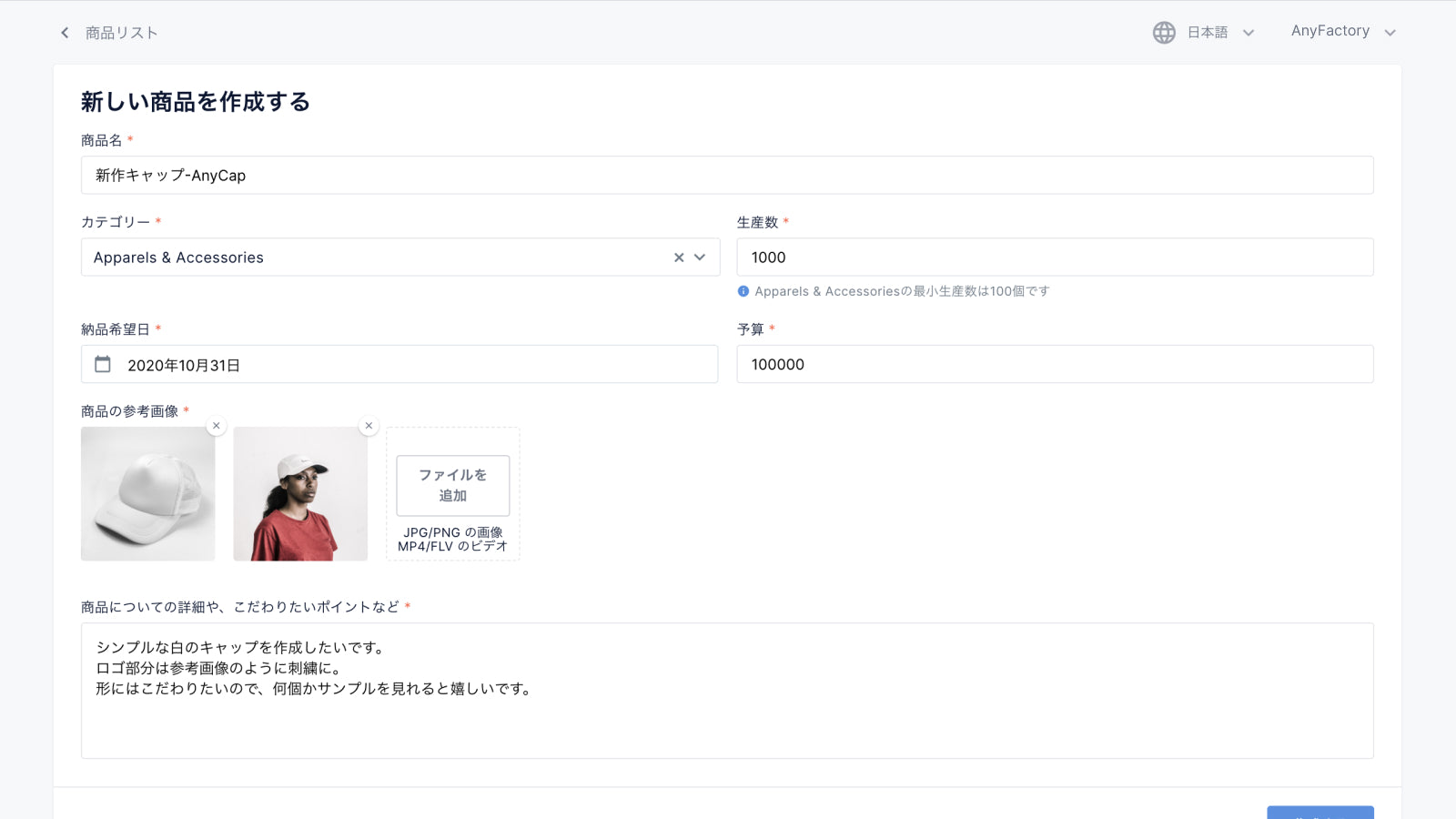 # AnyFactoryでより最適なパートナーを見つけ、ブランド製造・展開を加速していきませんか?アジア各国の200を超える生産工場と連携しており、作りたいプロダクトに応じて最適な工場をマッチングします。アジア13ヶ国17拠点に拠点にITビジネスを展開しているAnyFactoryだからこそ、要望に応じた最適な製造拠点の選定から、ECサイトによる販売環境の構築、スケール可能な生産管理体制をサポートしています。 # AnyFactoryの強み * 【最適な工場を探して提案】AnyFactoryが製品ごとに最適な工場を探し出します。また、専任のコンサルタントが発注要望を聞き、発注に関する煩雑なコミュニケーションを円滑にします。 * 【製品開発から販売支援まで全サポート】最適な製造拠点の選定だけでなく、仕様書やロットの調整、生産拠点の多角化、物流支援など必要に応じたご支援が可能。