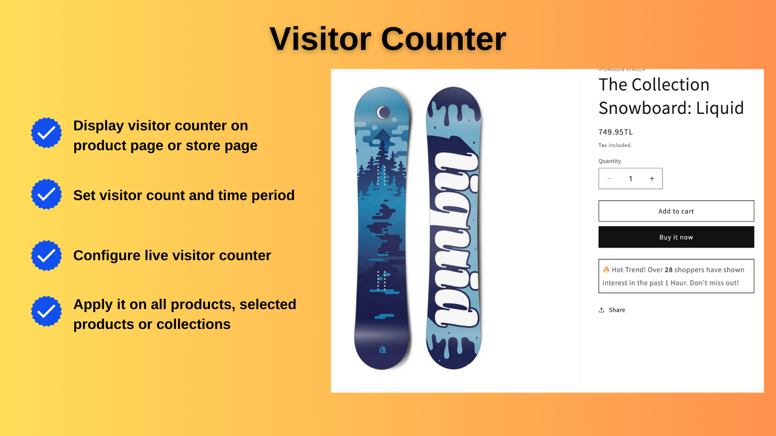 AppRoom Visitor Counter Pro provides live visitor tracking to enhance store credibility and social proof. Ideal for Shopify merchants, it showcases visitor interest, fostering a dynamic shopping experience. Easy to integrate and theme-adaptable, this tool operates efficiently, offering insights for informed business planning. It's the essential aid for a vibrant storefront.