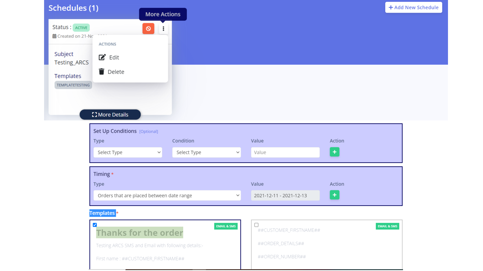 Site Communicator app allows store owners to communicate with their customers via email or text message in automated fashion. Purpose of the app is to communicate with customer via email and/or text using predefined templates and schedule. This app allows to define multiple templates for email and text messages. You can multiple templates and associate with their unique schedule. This app uses Twilio to send our messages and maintain log of all outgoing messages for 30 days.