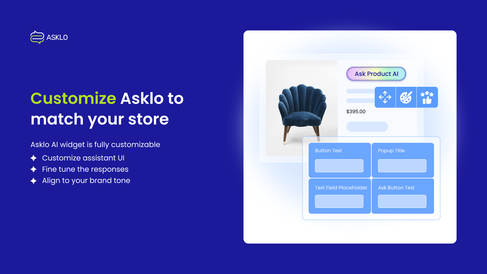 AI Assistant by Asklo automatically answers all your customers' questions. Add Asklo AI assistant on your product pages to instantly answer product questions, queries, Q&A, FAQs and more. Resolve doubts fast, deliver quick support, reduce support calls, and improve conversions. Asklo engages your customers by instantly answering questions around product details, shipping, policies, etc. Clarify their queries to speed-up checkout and improve add to cart rate. Get Asklo AI Assistant Today.