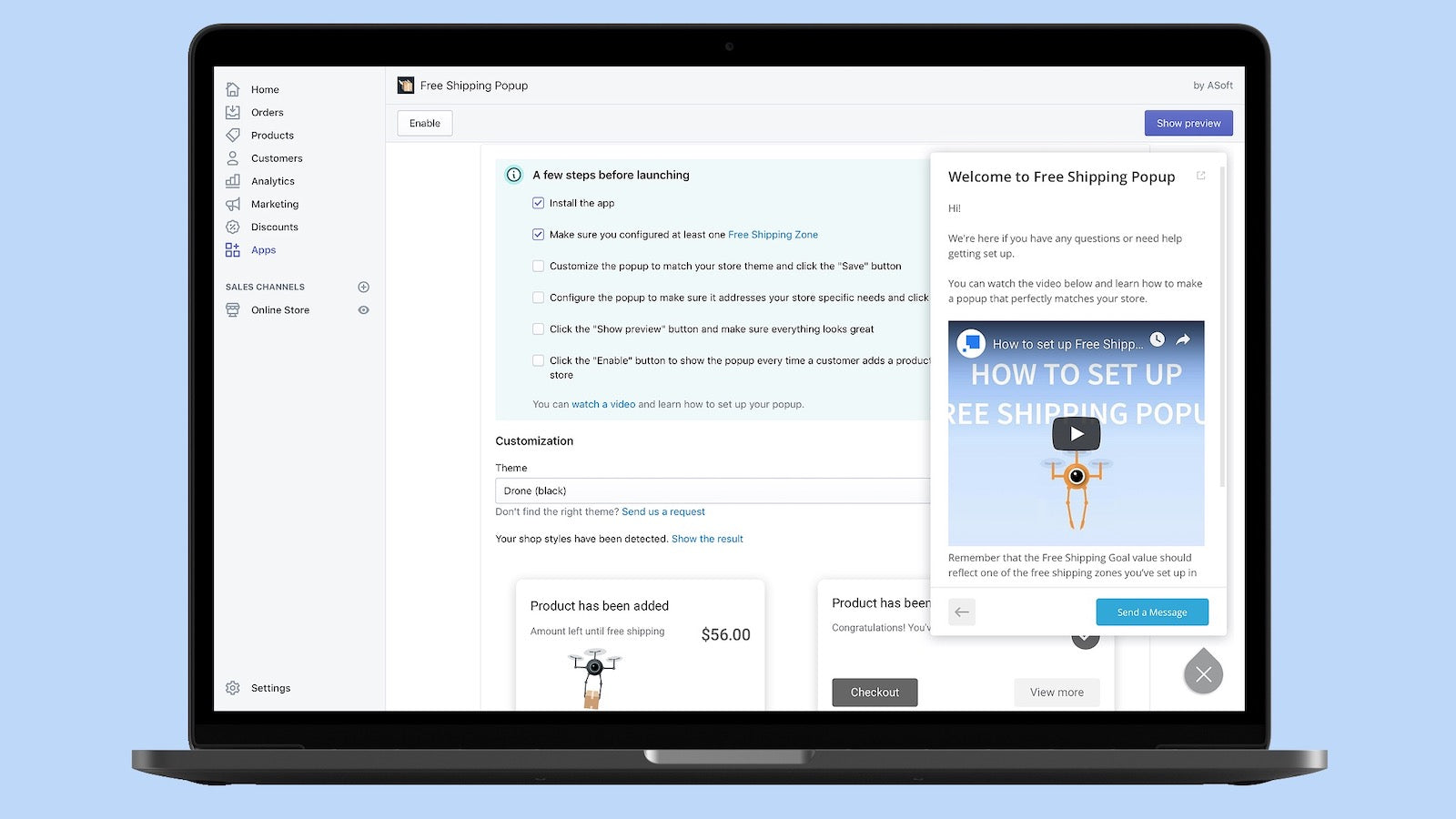 Add an animated popup with free shipping information that boosts your sales and impresses customers.