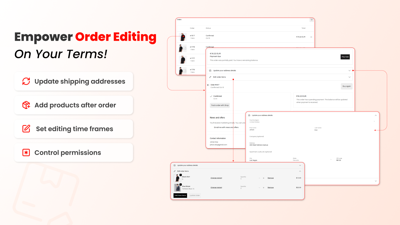 Edit Order App makes post-order changes easy for merchants and customers to update orders quick.