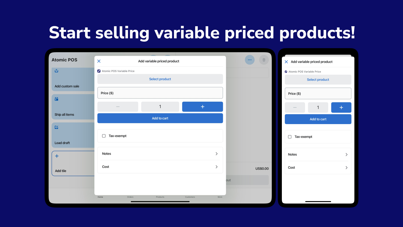 Easily add variable priced products to your POS cart!