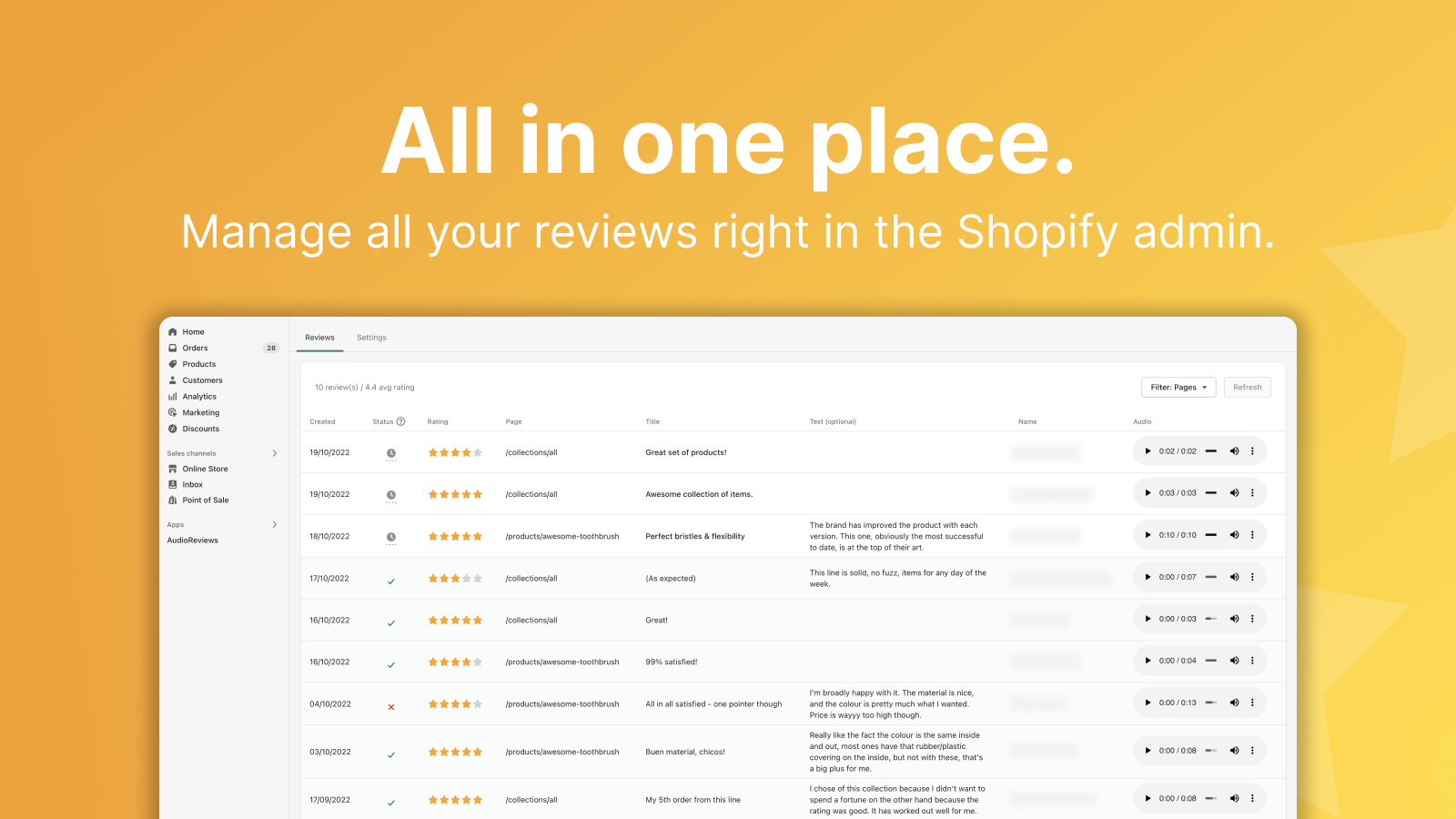 Today product reviews are no longer automatically trusted by customers. Authorities require you to prove your reviews are real. AudioReviews helps your business stand out from all those stores with fake 5 star reviews by allowing you to show real, authentic, voice recorded reviews from your customers.