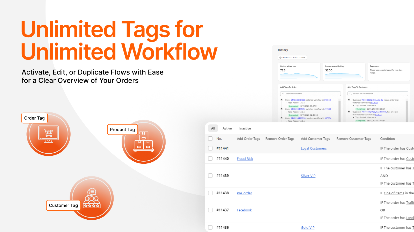 Automatic tagging for customers and orders in one app!