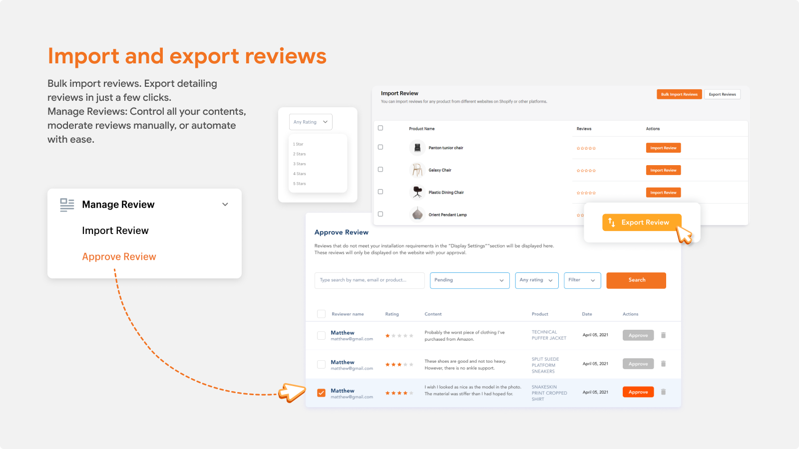 Help shop owners manage the product review section on their website brilliantly and conveniently.