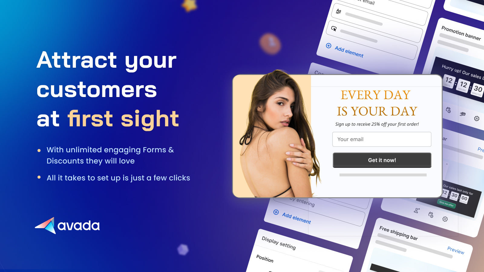 Maximize your sales and customer engagement with our Lead Booster, designed for a variety of purposes including discount offers, promotional banners, and timed sign-up incentives. Highly customizable and easily editable to match your brand's identity, ensuring a seamless experience. Turn visitors to customers and build your contact list while you are sleeping. Set triggers and conditions for targeted delivery and enjoy easy form management for performance tracking across all devices.