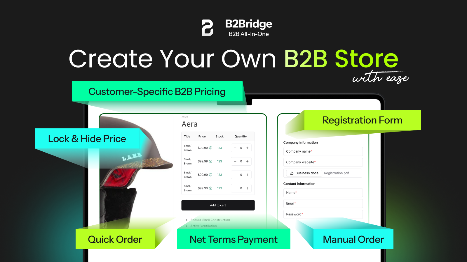 All-in-one B2B Solution: wholesale pricing, custom registration, and streamlined quick orders.