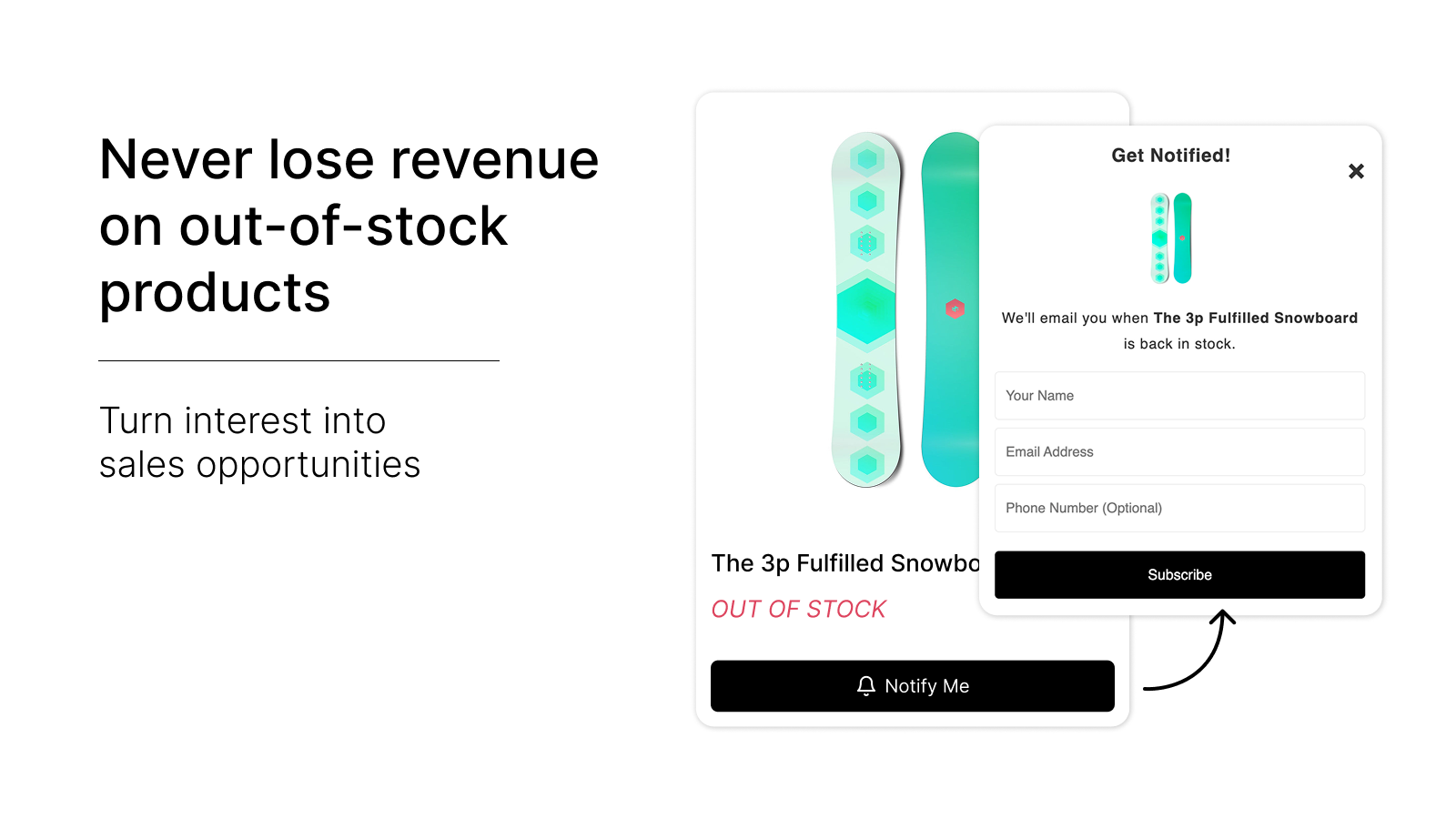 Restock alerts via WhatsApp, Email, SMS with built-in revenue tracking & analytics!