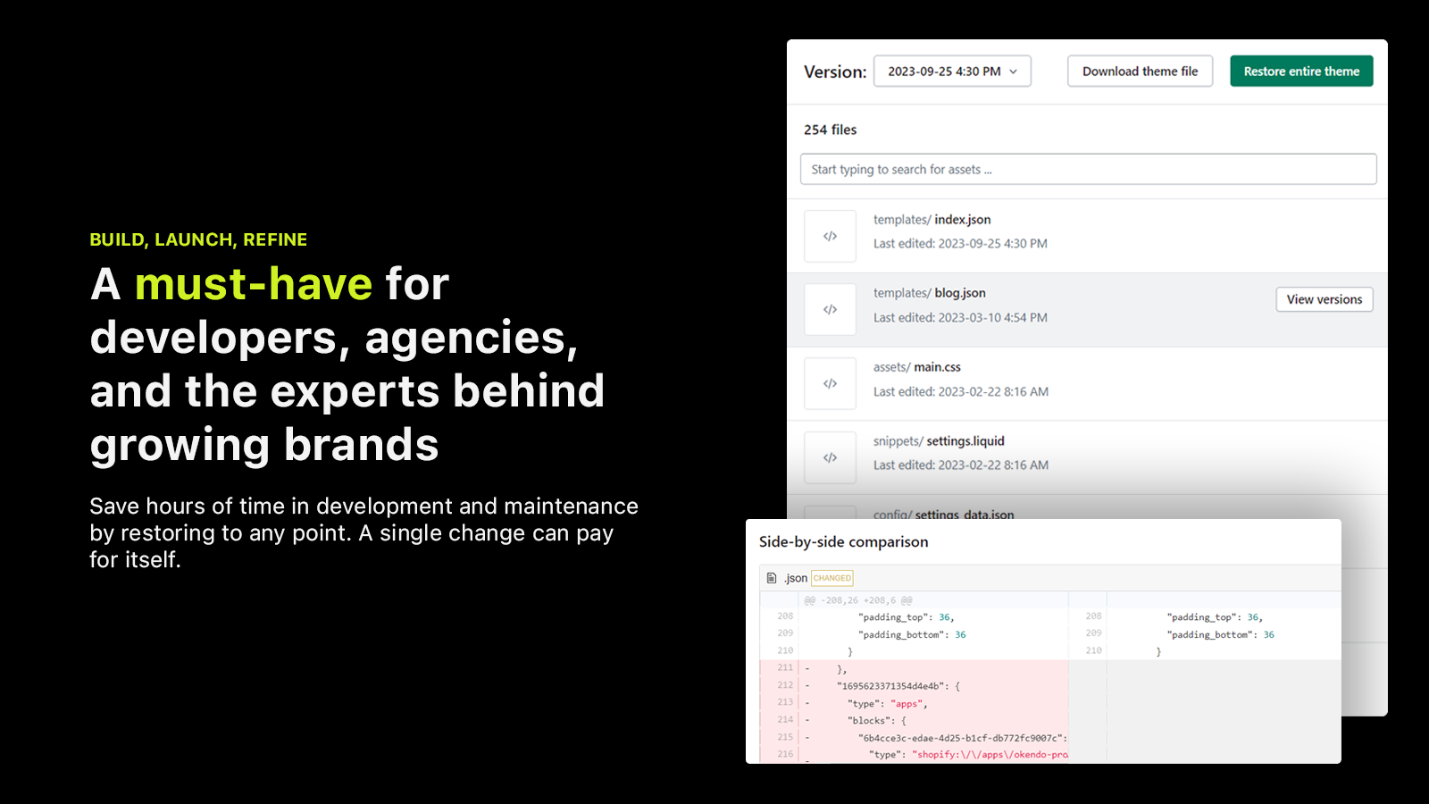 Diff Historic Changes, Undo Mistakes, Recover, and Restore.