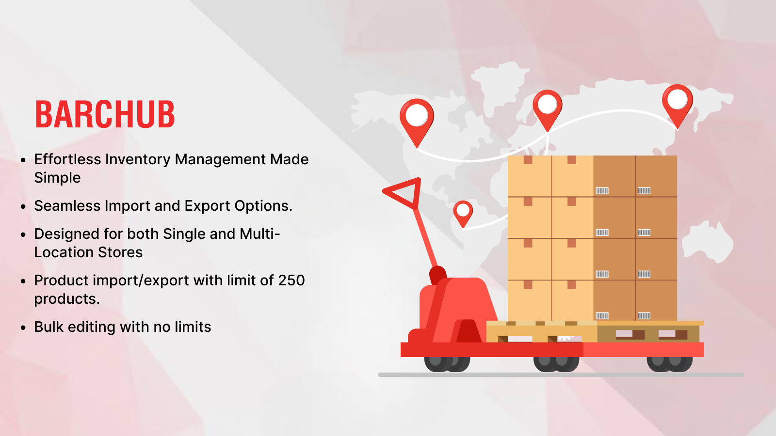 This app is designed to streamline inventory management for both single and multiple-location stores. Our app consolidates all critical fields—SKU, barcode, inventory levels, and locations—into a single, comprehensive sheet. It features bulk editing with no limits, allowing users to make large-scale changes efficiently. Additionally, the app supports product import/export with a limit of up to 250 products, making inventory handling seamless and time-saving for eCommerce businesses.