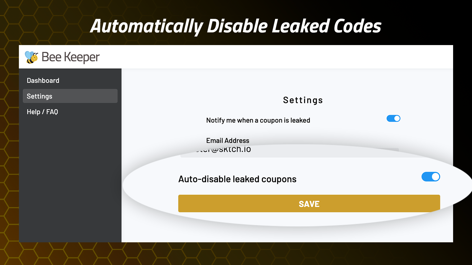 Coupon codes are a great way to reward customers and drive successful marketing campaigns. The issue is when those coupons get leaked on websites like Honey, SlickDeals, RetailMeNot and many more. These leaks can cost you a lot of money. Bee Keeper is an all-in-one tool that mitigates this issue for you. It monitors coupon sharing websites to detect coupon code leaks. It automatically notifies you when there's a leak and can automatically disable the coupons to prevent unwanted usage.