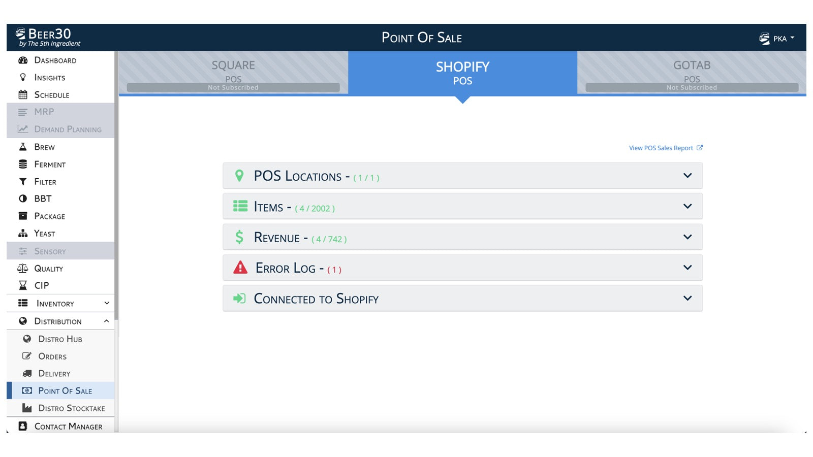 Integrates Beer30 or Bucha30 Distribution with POS systems