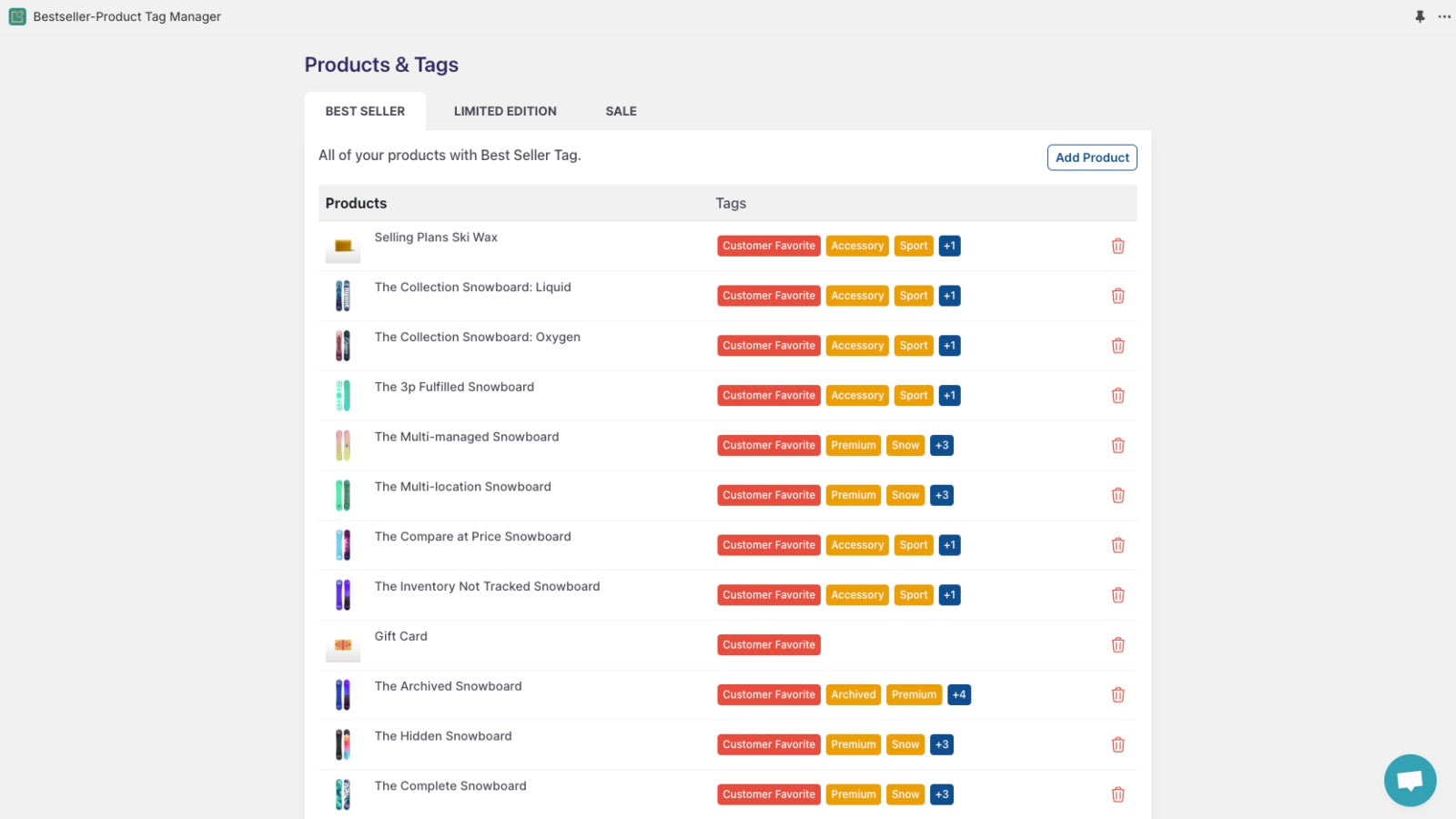 Adding tags on products, one by one, has always been a tedious task. Our powerful tagging products allows to easily tag multiple tags at once and setup custom badges to your products to make it stand out. Our tag types are [ "Customers Favorites"], ["Limited Edition"] & ["Sale"]