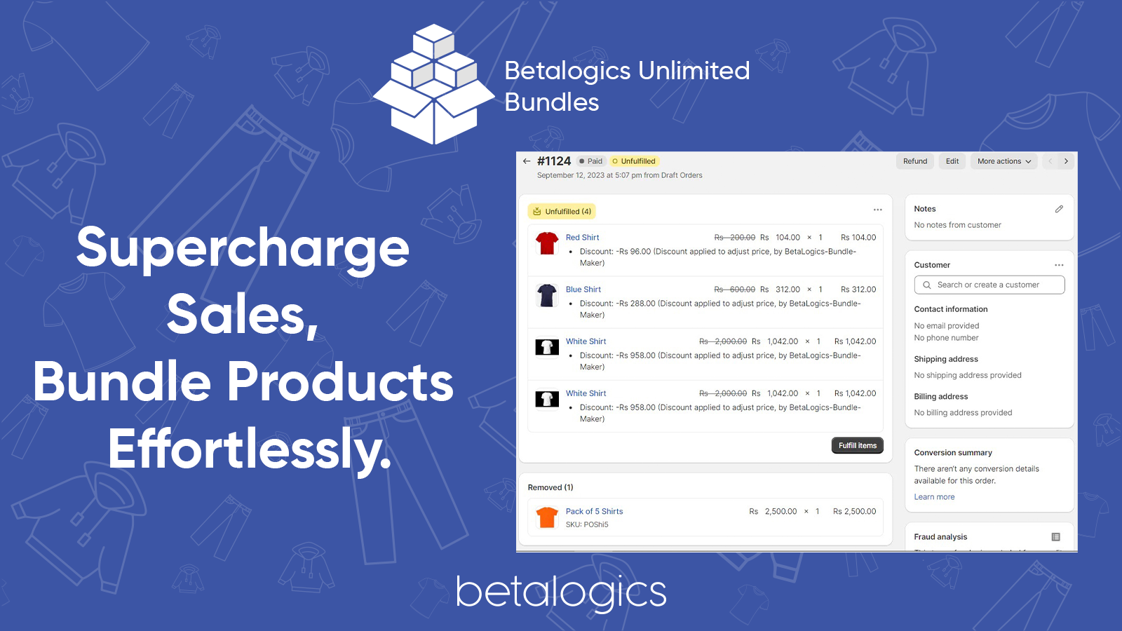 Elevate your sales strategy with Betalogics Bundle Maker. Seamlessly create product bundles, delighting customers with irresistible deals. Automate adjustments and watch your sales soar. Unleash the Power of Bundles with Betalogics Bundle Maker: Transform Ordinary Products into Extraordinary Deals!