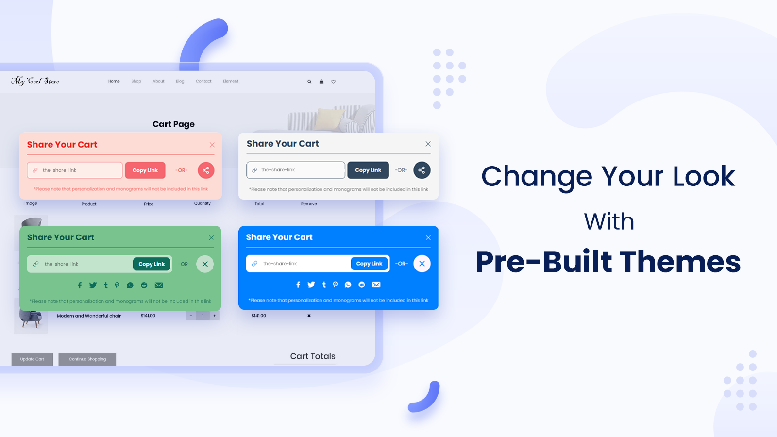 Bevy Share Cart adds a share button to your store's cart page, enabling customers to share their carts via social media with just a click. When visitors access the shared cart link, they can easily replicate the referrer's cart and make a purchase. Installing the app will automatically add the necessary code snippet to your Shopify theme. Simply enable the widget in the dashboard to get started.