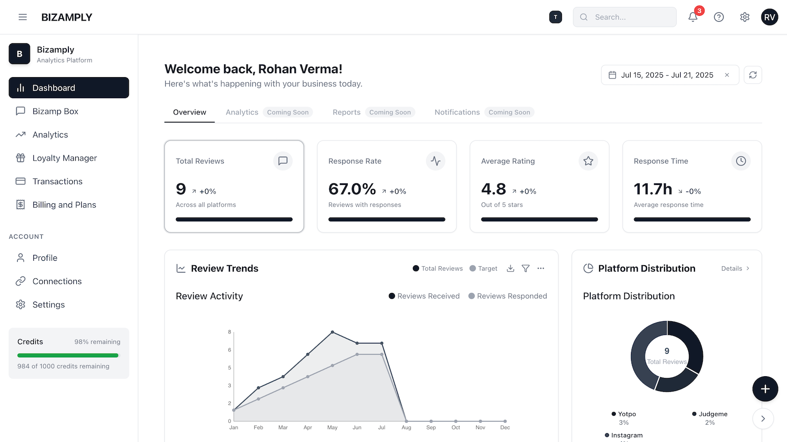 Bizamply AI leverages Gen AI to provide 24/7 personalised engagement across Instagram, Facebook, and your shopify website. It intelligently automates engagement, offers product recommendations, and generates leads' in real time. Merchants gain from consistent, instant responses that transform interactions into purchases and safeguard brand reputation—all without extra staff. This app resolves missed opportunities and slashes your engagement costs through smart, automated responses.