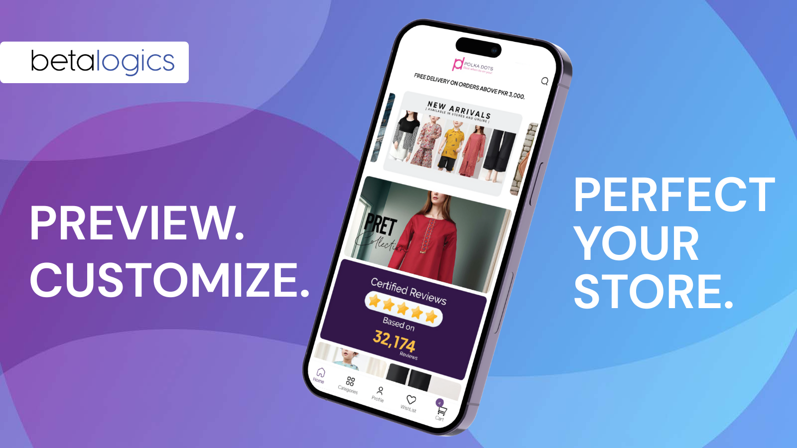 Build and preview a custom mobile app for your store, no coding needed, live on your own phone