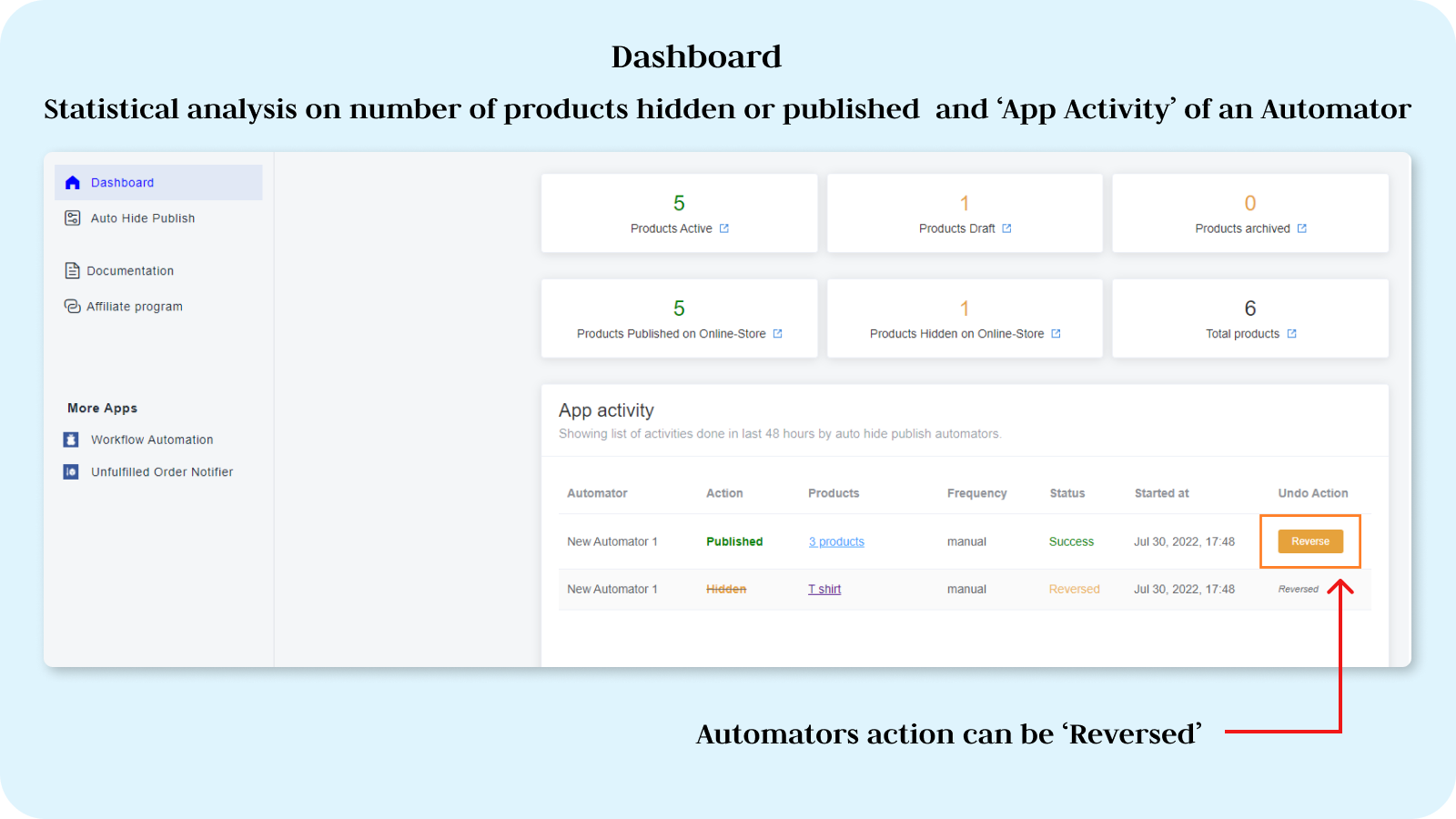 Improve buying experience for your customers by hiding Products they can't buy! The main challenge faced due to sold-out products is that customers may lose interest in shopping when they look at sold-out products, which may lead to a destructive impact on sales. Hence it's essential to manage sold-out products to have good sales. The app facilitates merchants to automate the process of hiding and publishing the products.