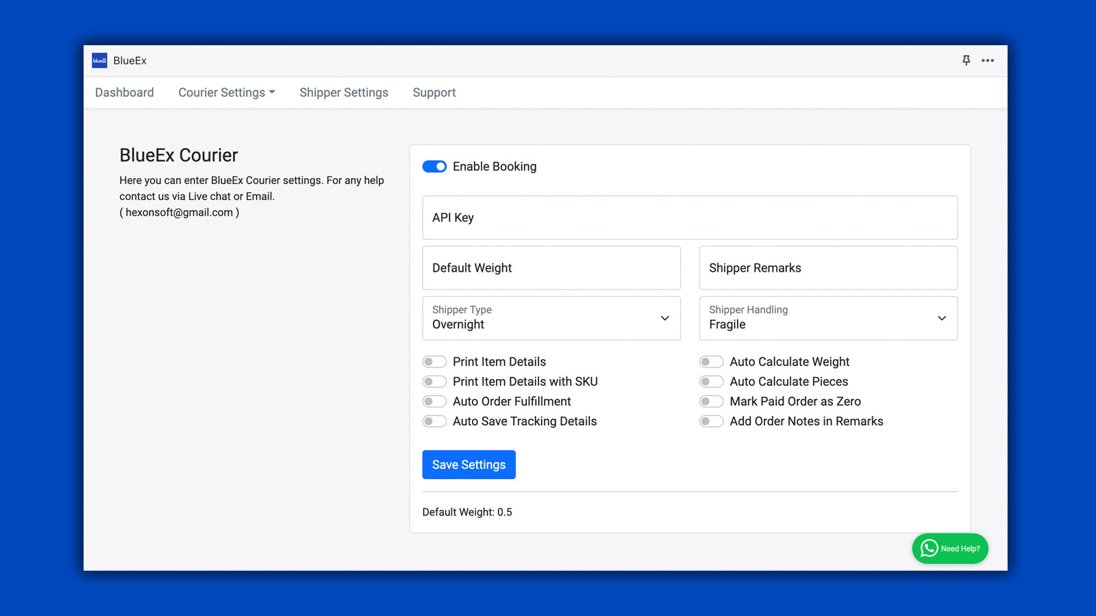 Connect your BlueEx Courier account and create shipment bookings and fulfilled orders from store.