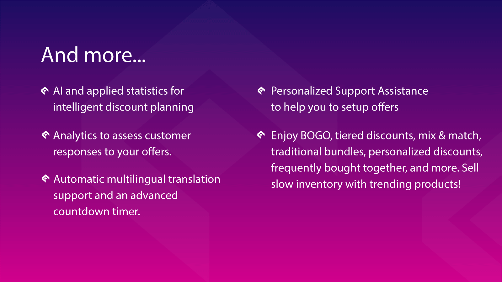 Boost sales with AI assistance by creating bundles, discounts, cross-sells, sales clocks, and banner