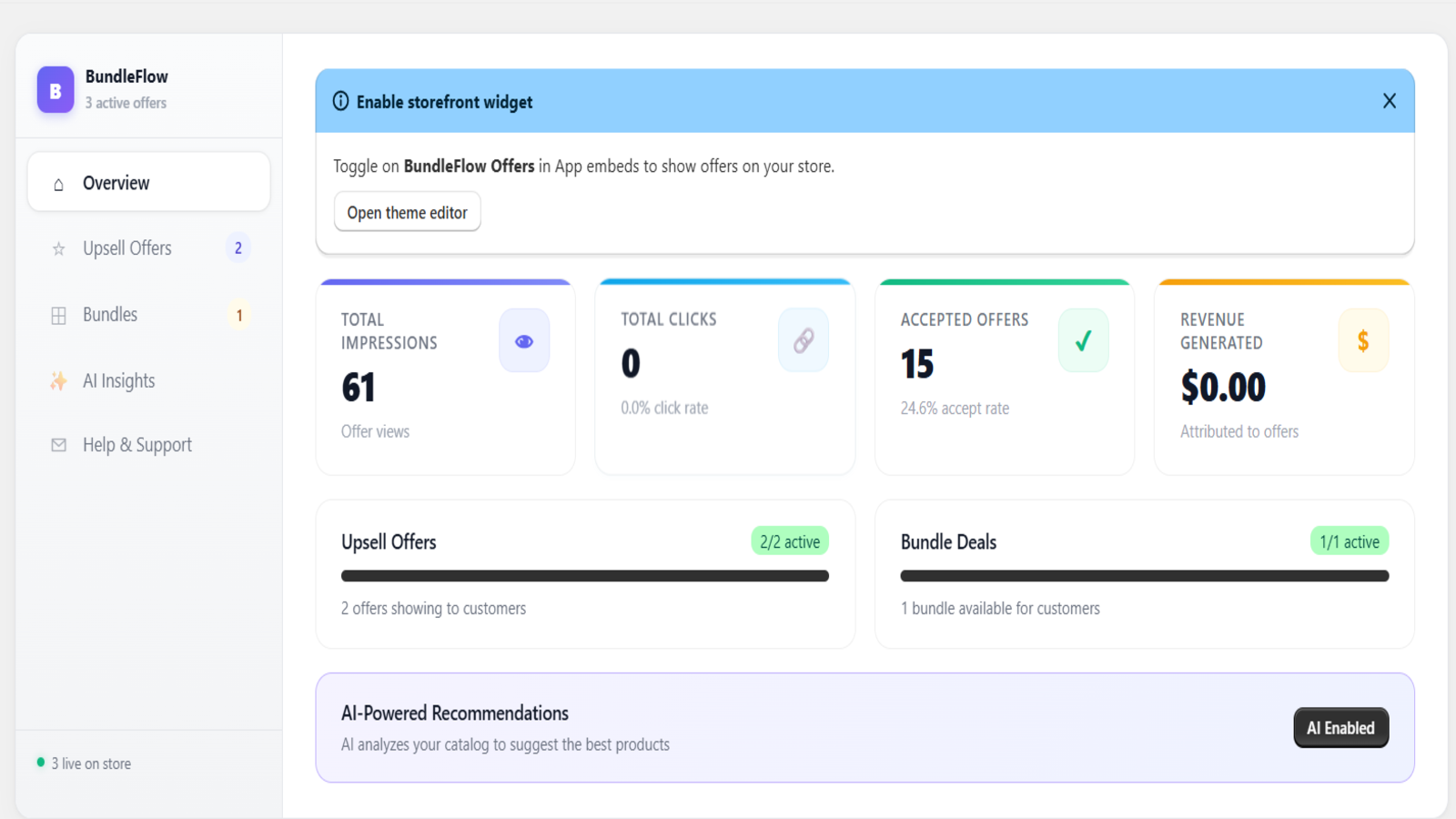Build product bundles and upsell offers for your store. Show them on product and cart pages with AI.