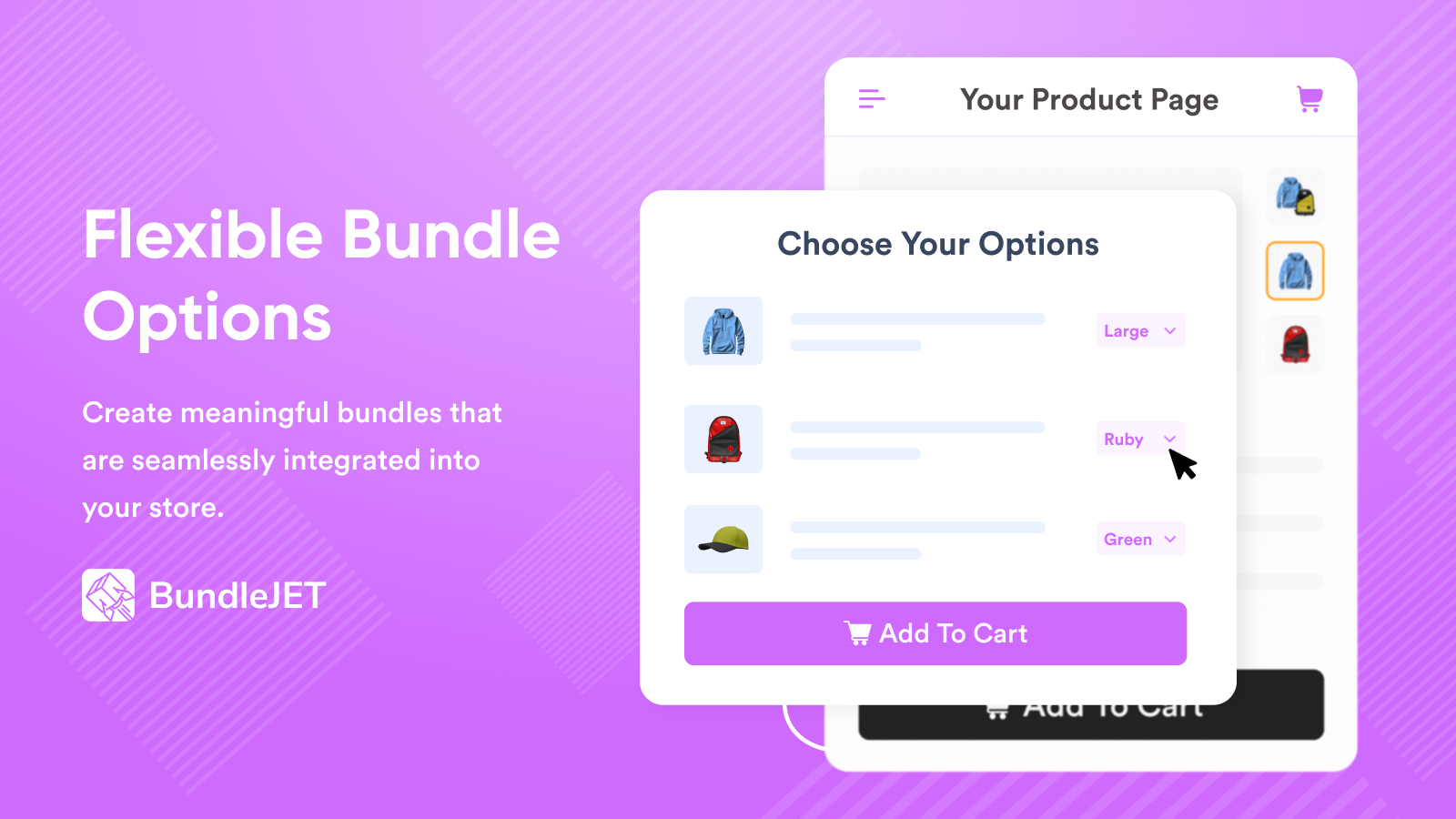 Create bundles the way you want it (add as many products or variants) at the price that makes sense (percentage, fixed discounts or a new price all together). Enables you to increase your AOV by offering a better value deal for your direct customers and gives you the meaning to handle your wholesale side. BundleJET will also take care of your product stock levels adjustments. And the best part is that it'll do this so seamless that your customer experience will not be affected one bit.