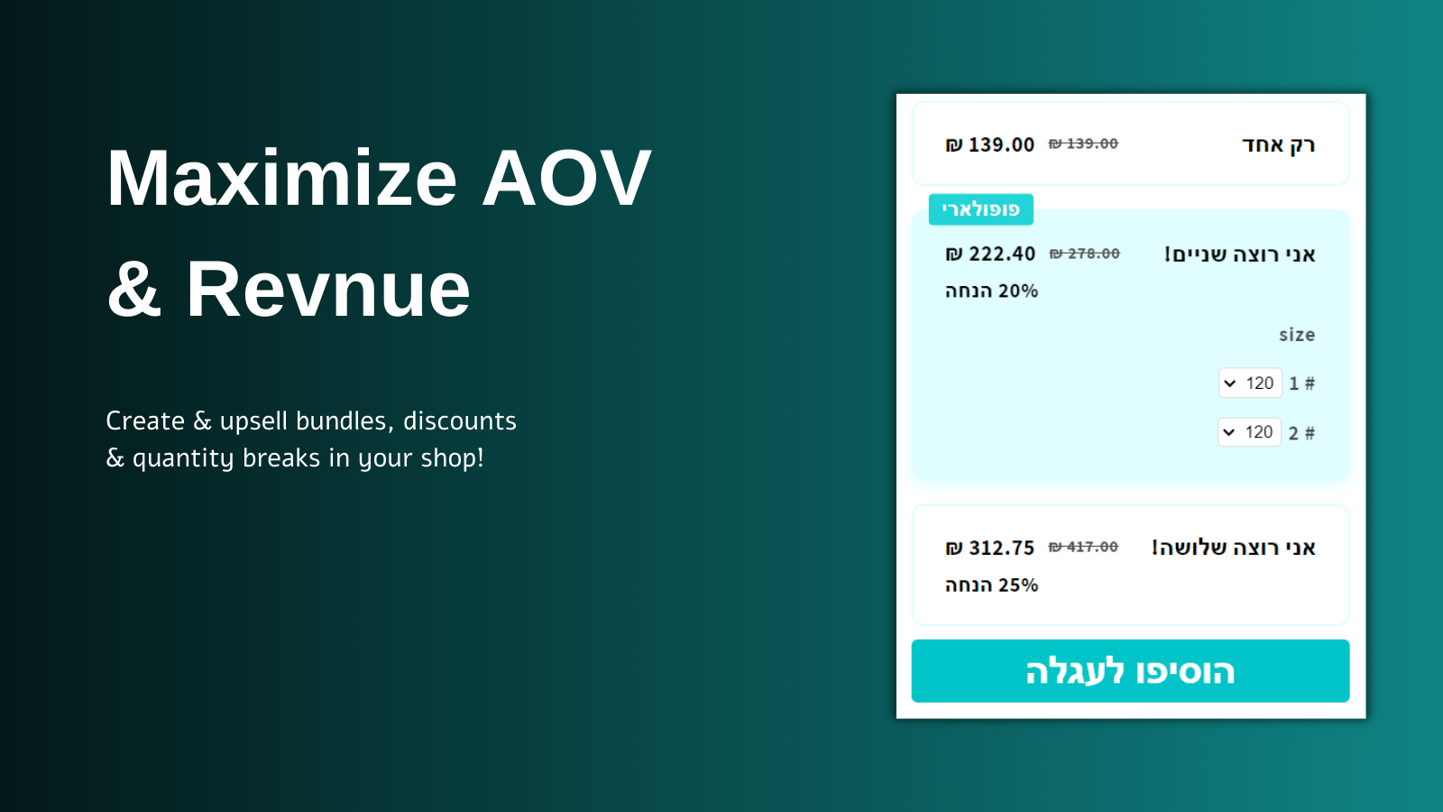 Maximize your store's revenue by creating custom product bundles and offering flexible discounts!