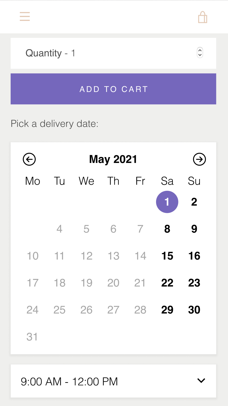 Delivery day and time slots with our intuitive date picker for local delivery or click and collect.