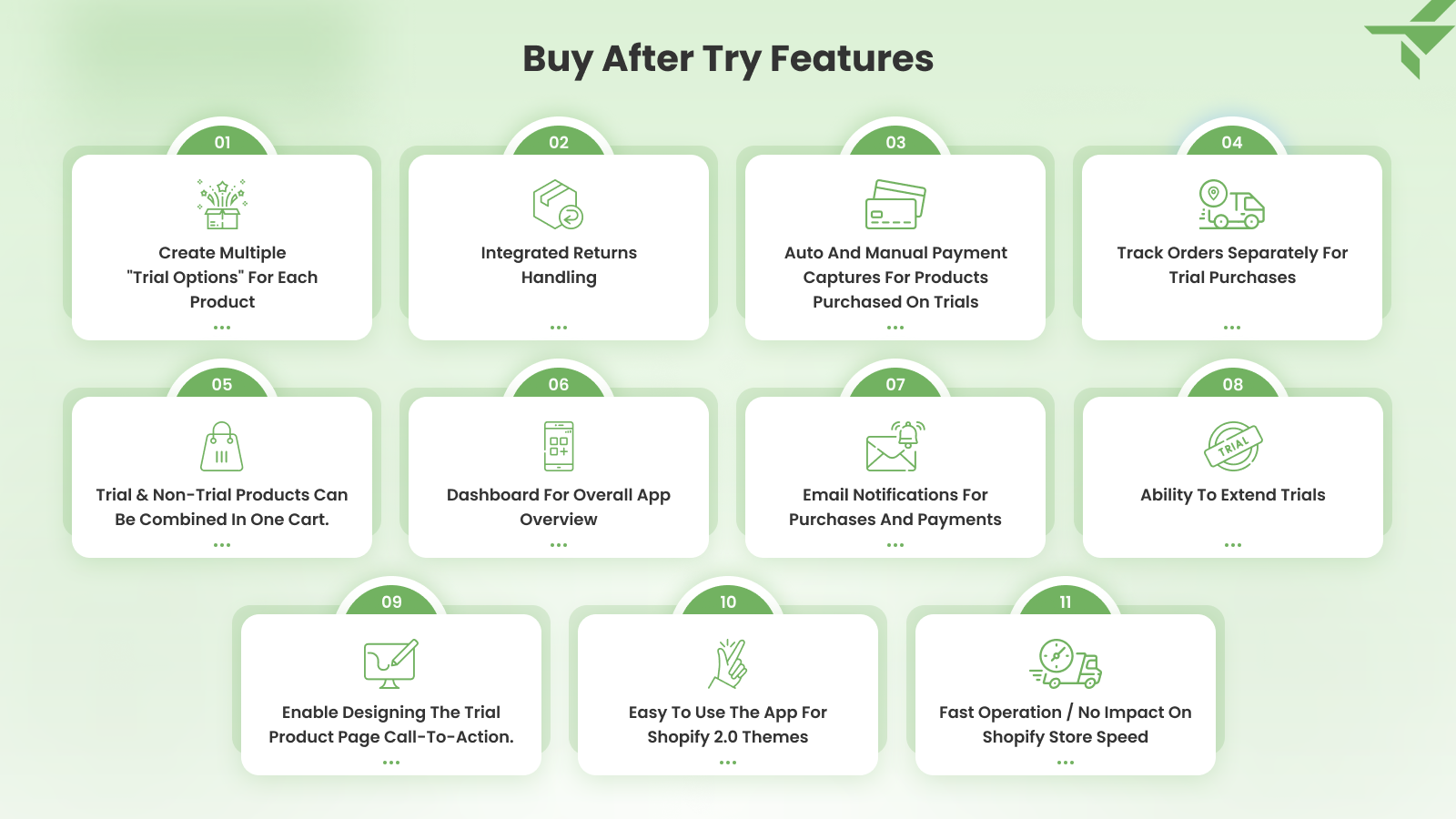 Offer customized purchase options to your customers with "BuyAfterTry" app. BuyAfterTry: Create multiple selling plans for each product. Use the full power of shopify with smartsell app to increase revenues. Easy Returns: Easy returns interface for your customers in the my account area. Very Easy to Use: You can create selling plans for any product, allowing your customers to fully experience your offerings before committing with very intuitive interface.