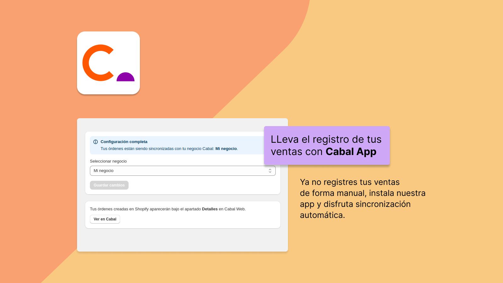 Ya no tienes que registrar tus ventas manualmente. Nuestra app está diseñada para ayudarte a sincronizar tus ventas de forma simple, instala y configura nuestra app en tu tienda y ¡listo! las ventas que realices en tu Tienda aparecerán registradas en tu sistema contable Cabal.