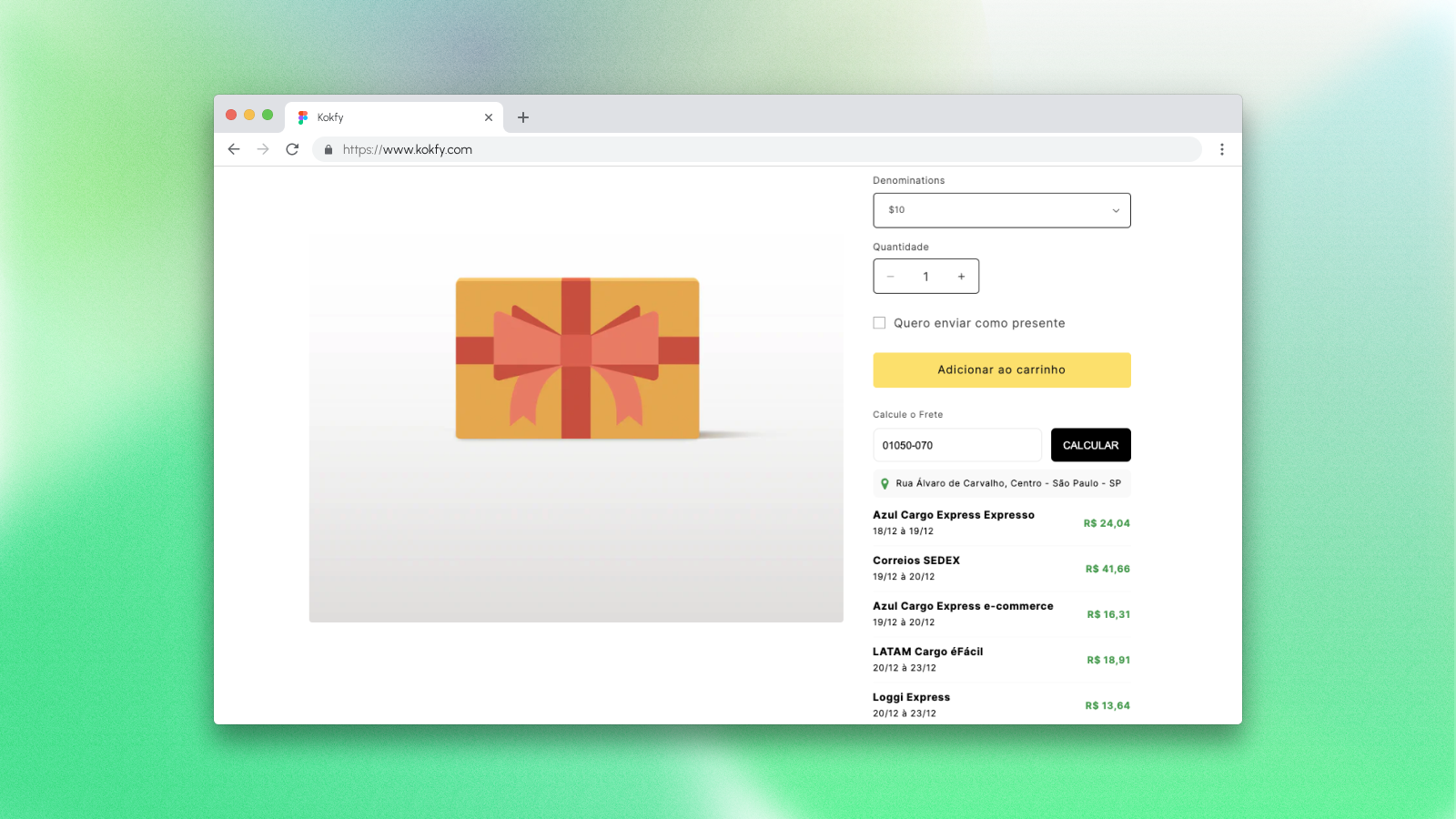 Lojistas que vendem produtos físicos no Brasil precisam oferecer informações precisas de frete para reduzir abandonos de carrinho. Nosso app adiciona um box de cálculo na página do produto e no carrinho. Integre com as principais transportadoras brasileiras e configure dimensões e peso para cada variante, garantindo cálculos precisos. Os prazos e valores são fornecidos em tempo real, com opção de adicionar dias extras. Isso melhora a experiência do cliente e aumenta a confiança na sua loja.