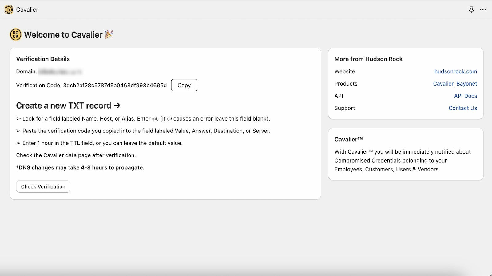 Cavalier by Hudson Rock - Monitor your website's domain for new compromised employees and users.
