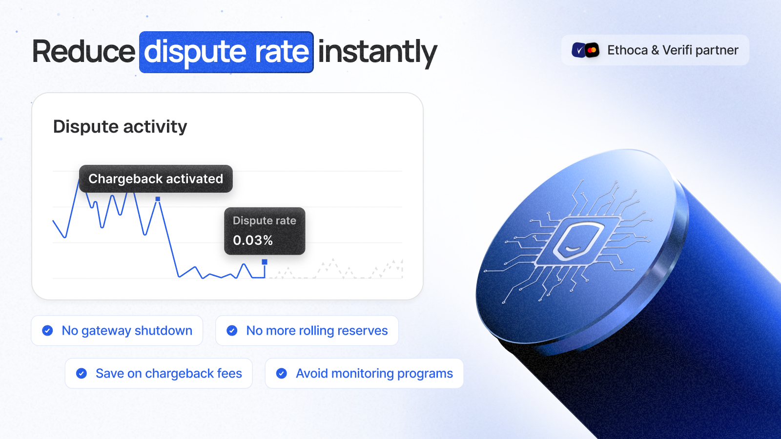Start preventing chargebacks on autopilot. No more money holds or shutdown.